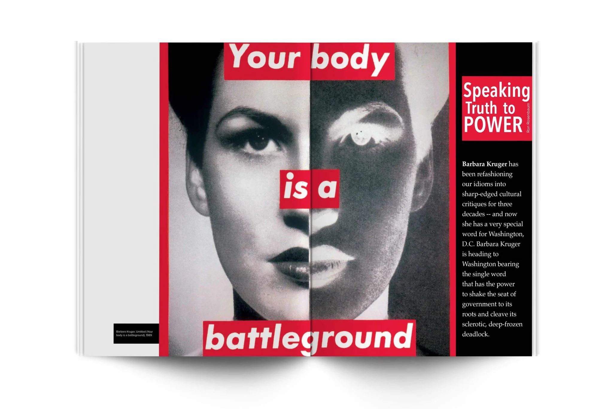 This fictional editorial project was born out of my love for visual storytelling and activist art. Revolutionary Design is a magazine concept that honors some of the most influential female activist artists: Barbara Kruger, the Guerrilla Girls, and Luba Lukova.